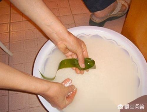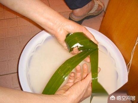 把粽子叶放水里煮,水开10分钟后即可取出冷水洗净剪两端多余后滤干。