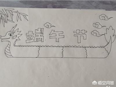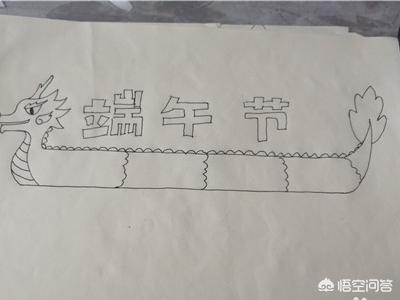 1、首先把绘画的用具准备好,先在纸上画上一条龙舟,如图。
