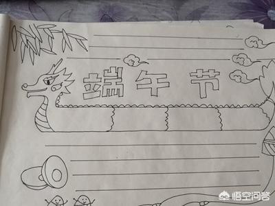 3、手抄报的中间画一个男孩抱着一蒸笼粽子,男孩两侧画简单花边。