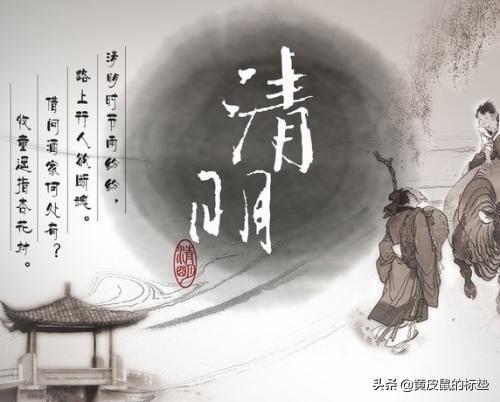 《清明》是唐代文学家杜牧的诗作。此诗写清明春雨中所见。第一句交代情景、环境、气氛;第二句写出了人物,显示了人物的凄迷纷乱的心境;第三句提出了如何摆脱这种心境的办法;第四句写答话带行动,是整篇的精彩所在。全诗色彩清淡,心境凄冷,运用由低而高、逐步上升、高潮顶点放在最后的手法,余韵邈然,耐人寻味,历来广为传诵。
