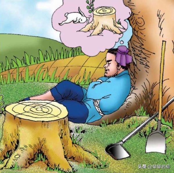 原文:宋国有个种地的农民,他的田地中有一截树桩。一天,一只跑得飞快的野兔撞在了树桩上,折断了脖子死了。于是,他便放下他的农具日日夜夜守在树桩子旁边,希望能再得到一只兔子。然而野兔是不可能再次得到了,而他自己也被宋国人耻笑。