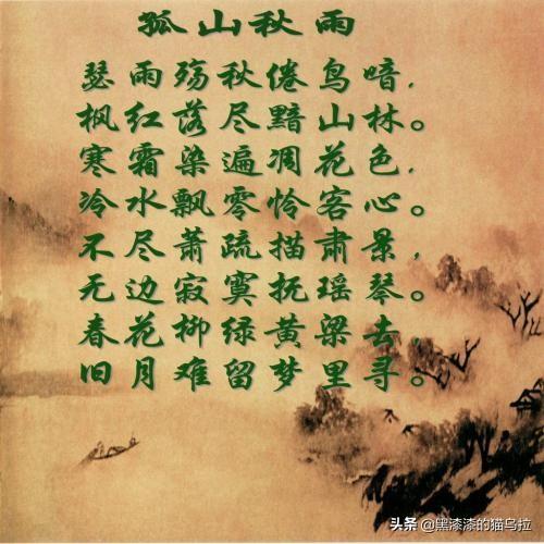 1、夜山秋雨滴空廊,灯照堂前树叶光。对坐读书终卷后,自披衣被扫僧房。——王建《秋夜对雨寄石瓮寺二秀才》