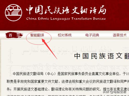2、打开中国民族语文翻译局首页之后,点击智能翻译。