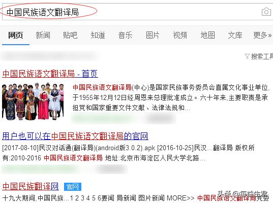 1、打开浏览器首页,输入“中国民族语文翻译局”点击搜索。在搜索出的结果里面,点击选择中国民族语文翻译局首页的网站。