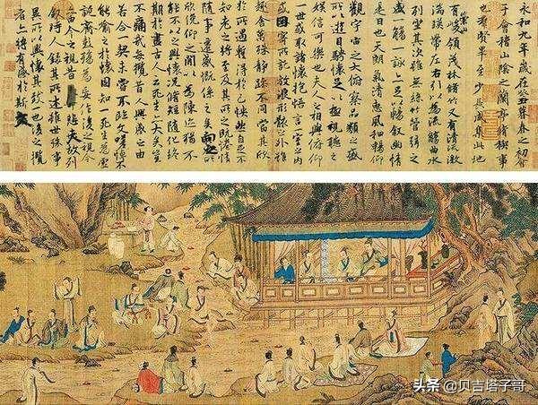 晋穆帝永和九年农历三月初三,王羲之曾在会稽山阴的兰亭,与名流高士谢安、孙绰等四十一人举行风雅集会。与会者临流赋诗,各抒怀抱,抄录成集,大家公推此次聚会的召集人,德高望重的王羲之写一序文,记录这次雅集,即《兰亭集序》。