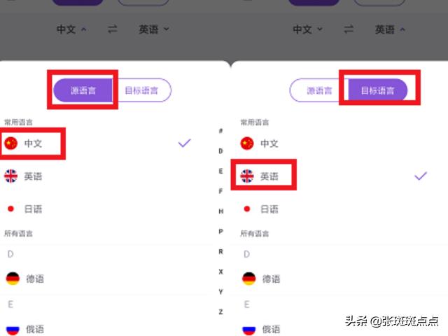 2、将源语言改为中文,目标语言改为英文(软件默认翻译语言为中文翻译英文,所以这一步可以不看);