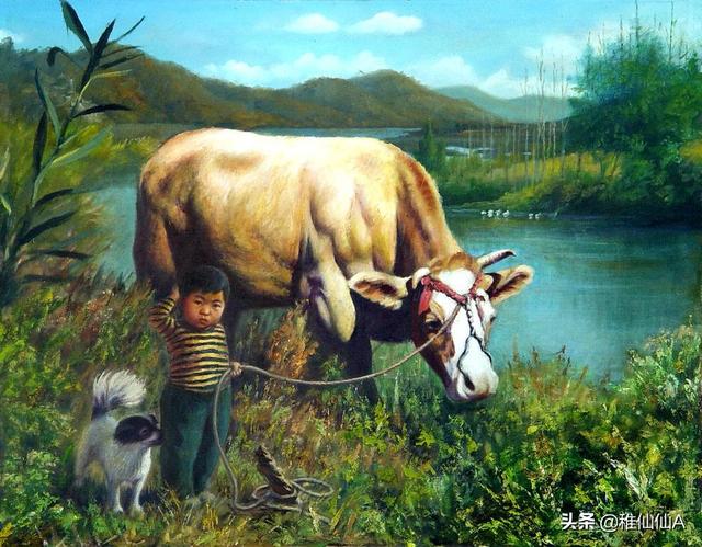 牧童骑在黄牛背上,嘹亮的歌声在林中回荡。忽然想要捕捉树上鸣叫的知了,就马上停止唱歌,一声不响地站立在树旁。