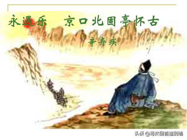 千古江山,英雄无觅孙仲谋处。舞榭歌台,风流总被雨打风吹去。斜阳草树,寻常巷陌,人道寄奴曾住。想当年,金戈铁马,气吞万里如虎。