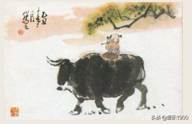 绿草长满了池塘,池塘里的水多的要溢出了塘岸。远远的青山,仿佛叼着彤红的落日,一起把影子倒映在水中,闪动着粼粼波光。牧童骑在牛背上慢慢往家回,手里拿着一支短笛,没有依照乐谱,随意吹着音调。
