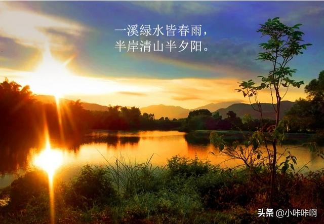 1、一溪绿水皆春雨,半岸清山半夕阳。——出自清朝查慎行《池河驿》