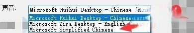 在“语音设置”窗口中,点击“声音”按钮,在弹出栏目中,选择声音语言,如:点击“Microsoft Simplified Chinese”
