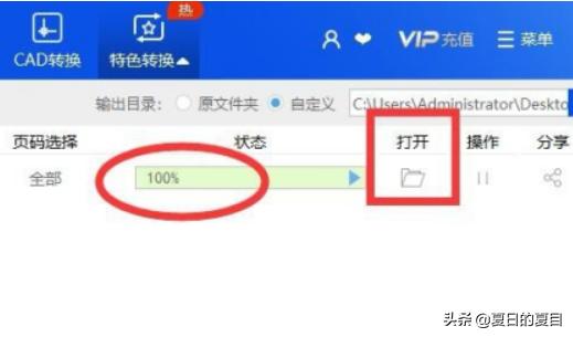 5.稍等片刻后,文件翻译很快的。当页面上方的【状态】栏目中,转换进度显示100%的时候。文件翻译就完成了,然后直接在页面点击【打开】按钮,就可以查看翻译完成的中文文件了。