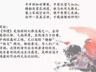 陆游的爱国诗有《十一月四日风雨大作 》《书愤》《夜泊水村》《游山西村》《病起书怀》《沈园》《金错刀行》等等。陆游出生在北宋灭亡之时,因此深受家庭爱国思想的影响。这些诗都表达出了诗人强烈的爱国思想。