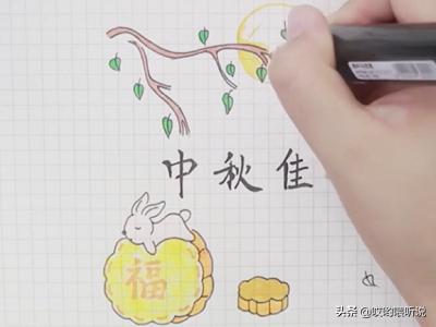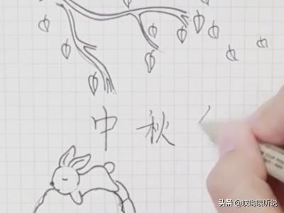 1、中秋节的画可以先画只兔子,正好中秋节时家家户户都要吃月饼,所以可以在下方画个月饼,其上方可以绘制上一些简单的树枝作为搭配。