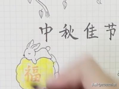 2、接着,在树枝和兔子的中间可以写上“中秋佳节”之类的文字突显主题。