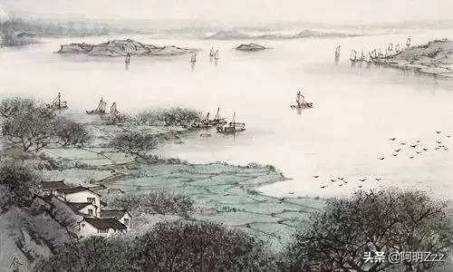 诗以“泊船瓜洲”为题,点明诗人的立足点。首句“京口瓜洲一水间”写了望中之景,诗人站在瓜洲渡口,放眼南望,看到了南边岸上的“京口”与“瓜洲”这么近,中间隔一条江水。由此诗人联想到家园所在的钟山也只隔几座山了,也不远了。次句“钟山只隔数重山”暗示诗人归心似箭的心情。